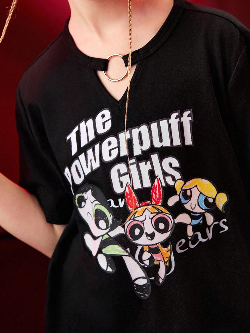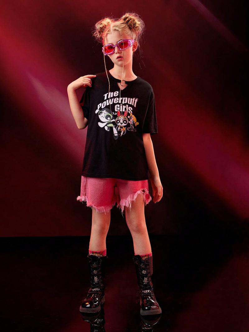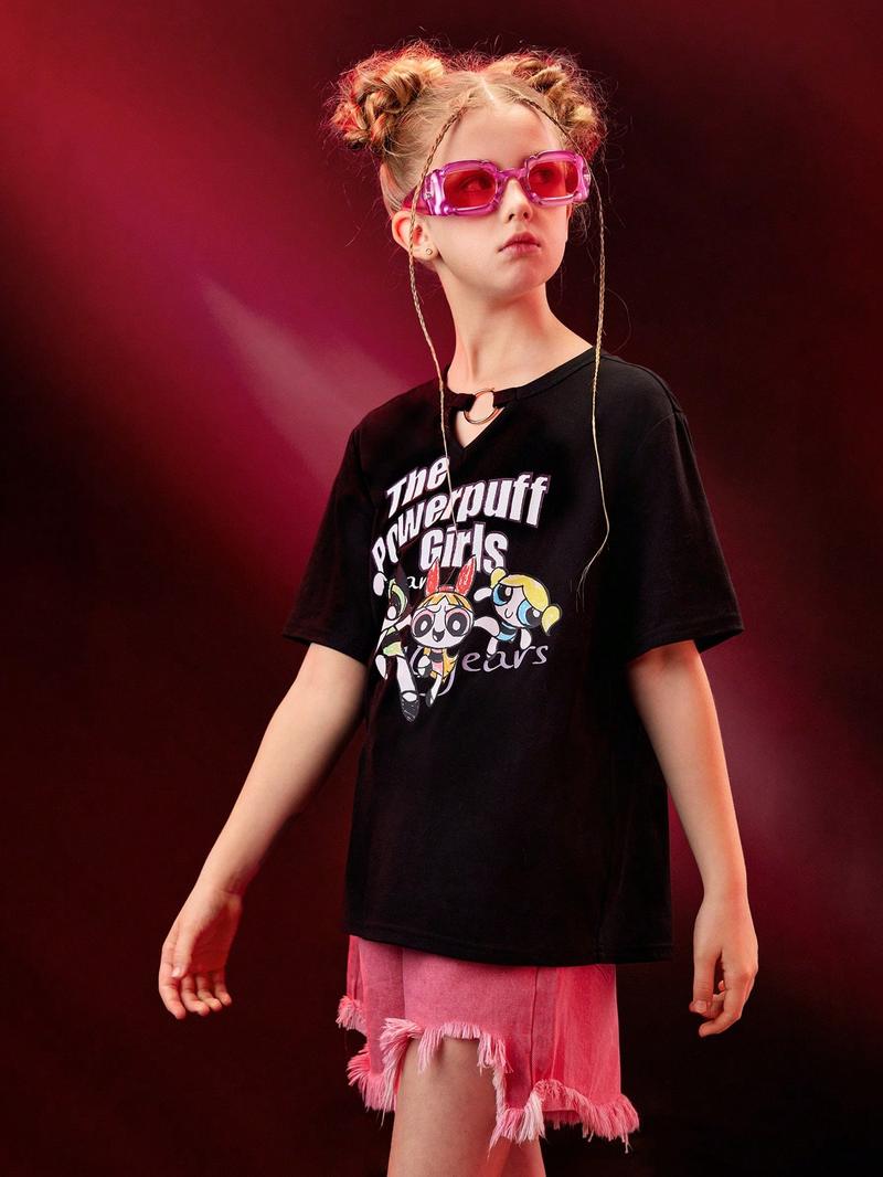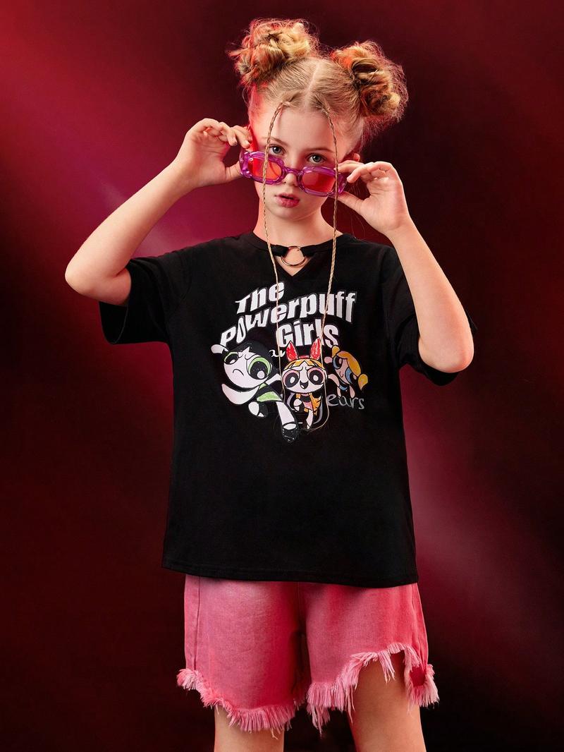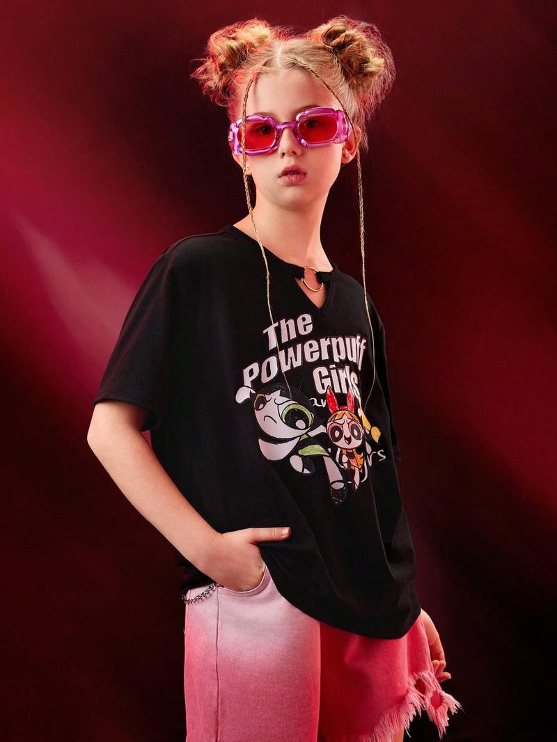 Футболка для девочек-подростков SHEIN с рисунком и буквами, черный