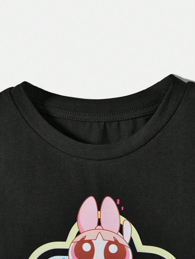 Футболка для девочек SHEIN с рисунком и буквами для девочек, черный