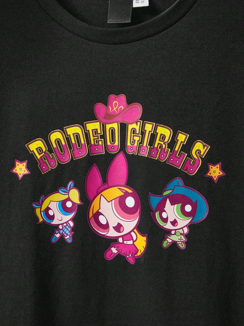 Футболка для девочек SHEIN с рисунком и буквами для девочек, черный