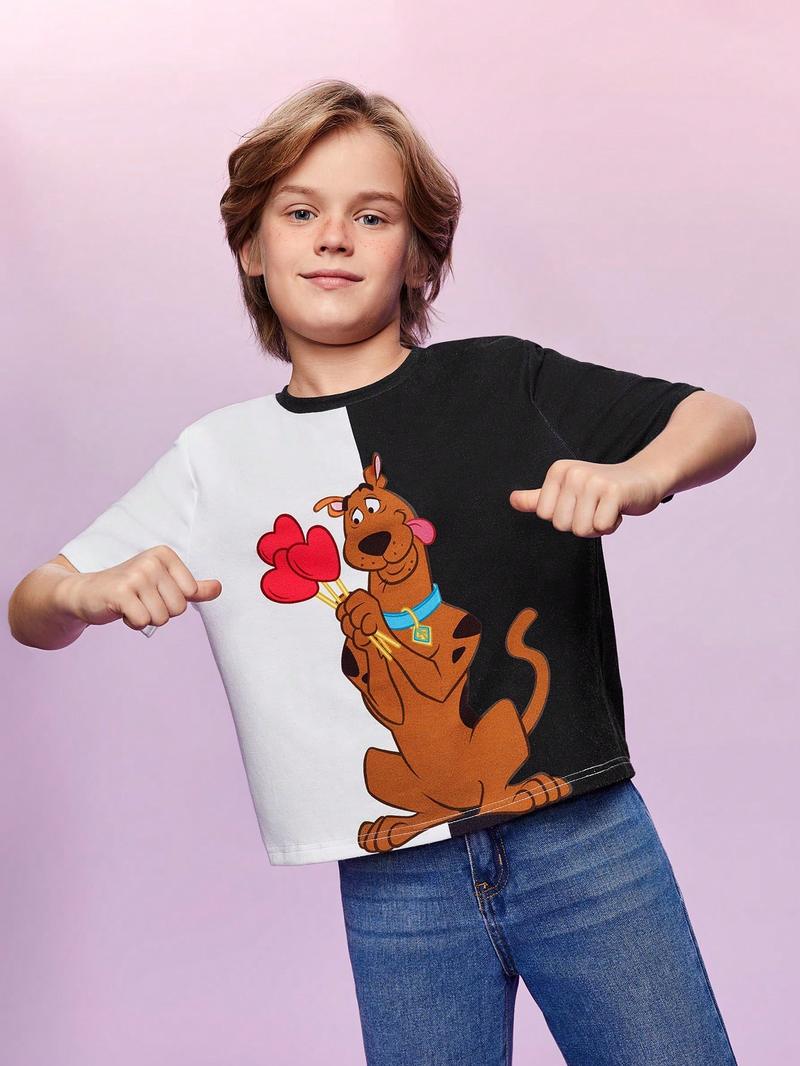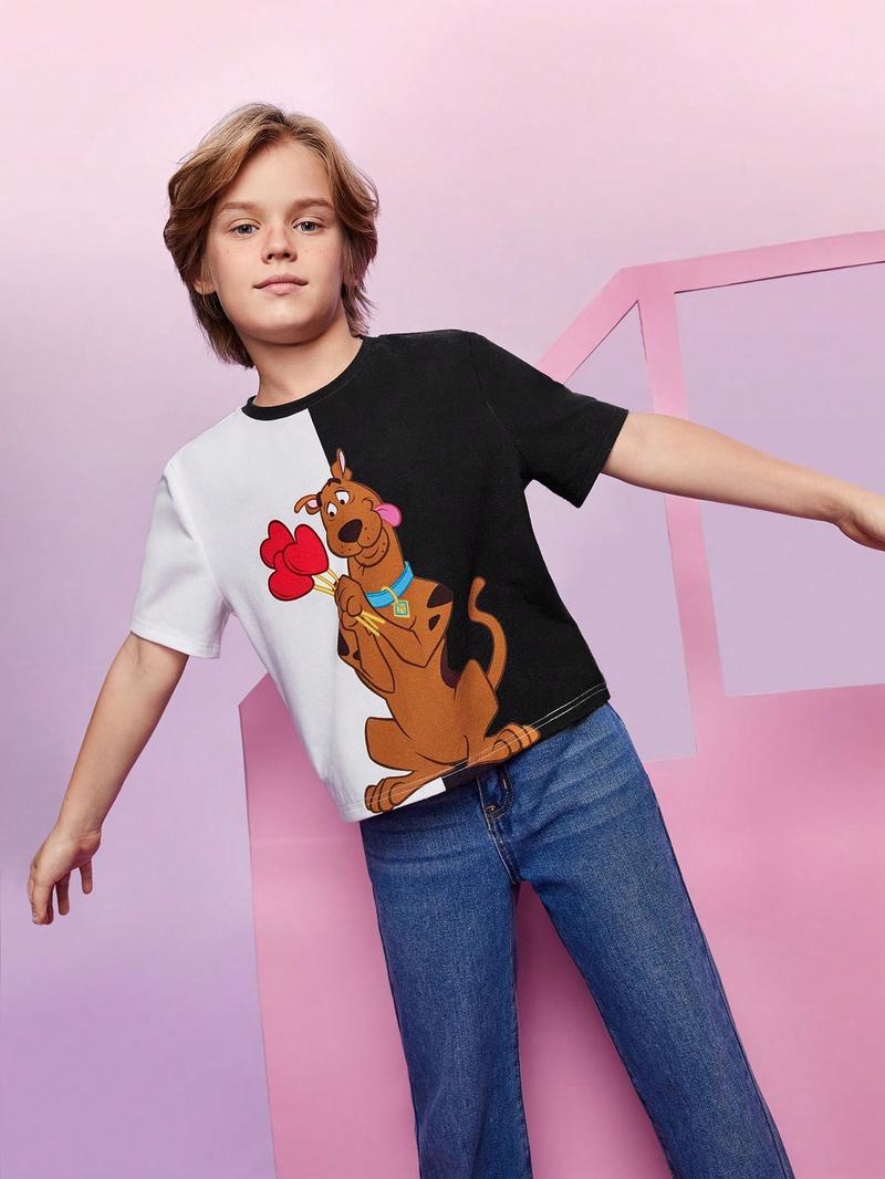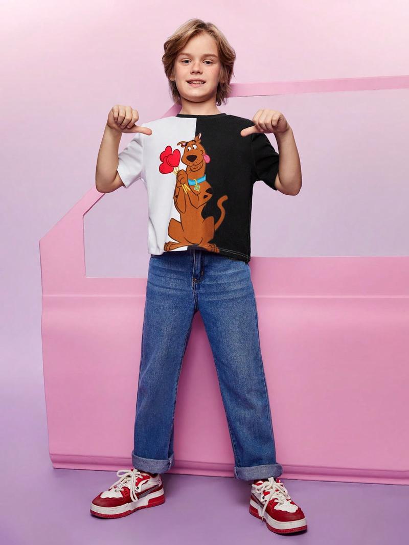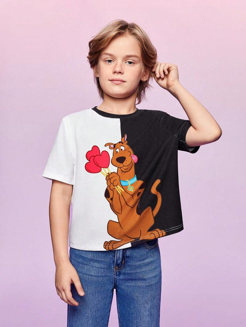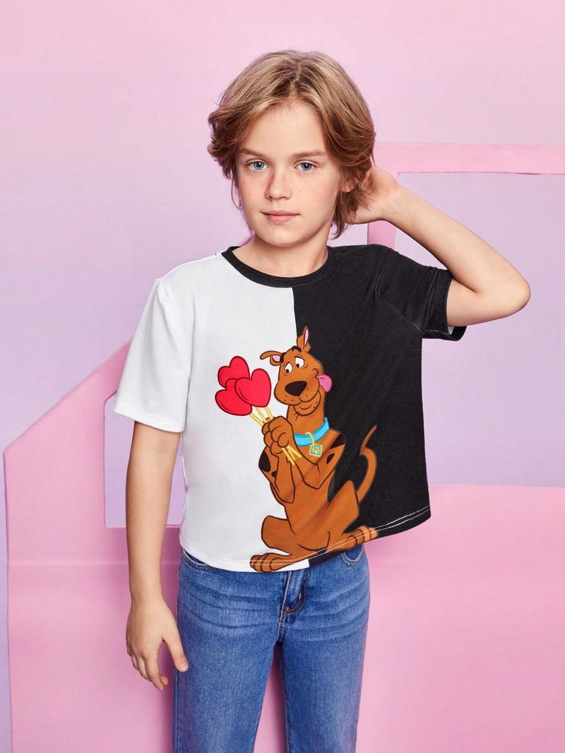 Футболка для мальчиков-подростков SHEIN с мультяшным рисунком и цветными блоками, многоцветный