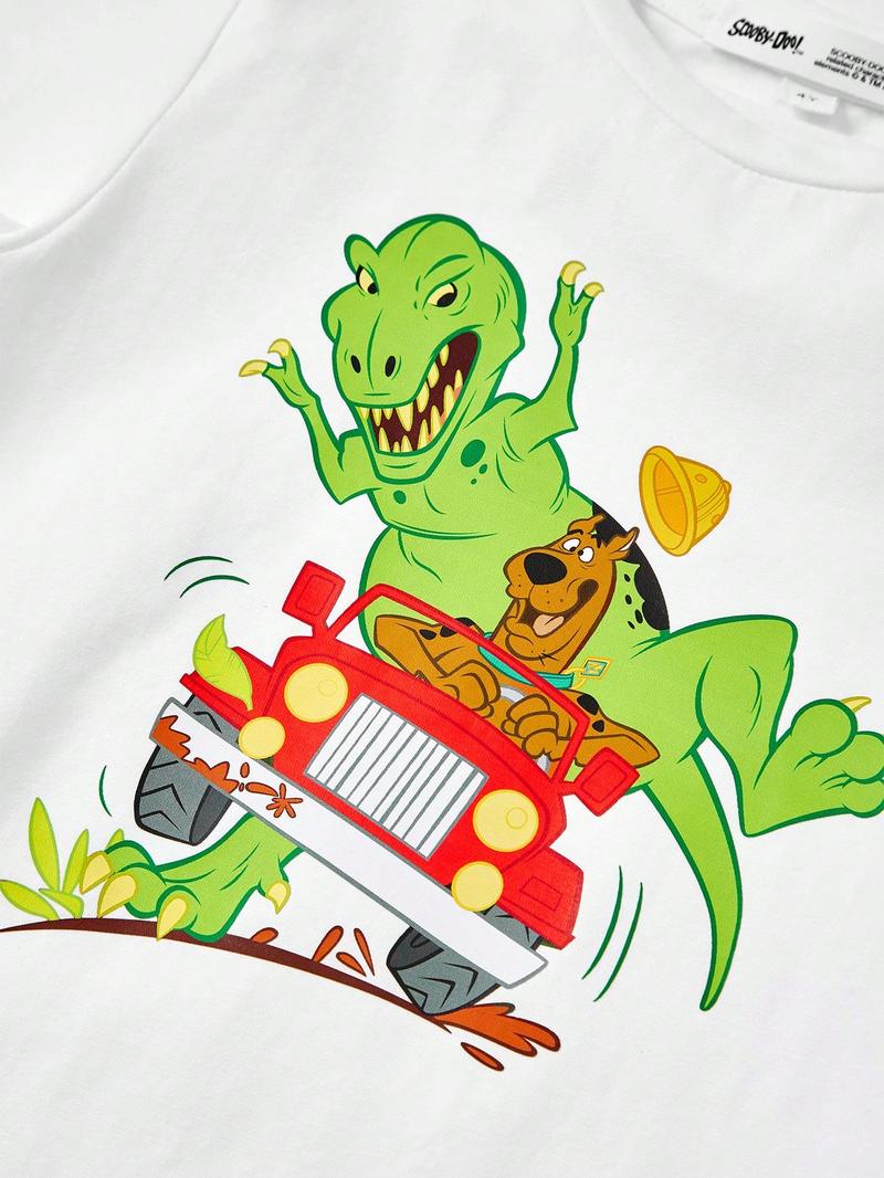 Футболка для мальчиков SHEIN с изображением динозавров и мультфильмов, белый