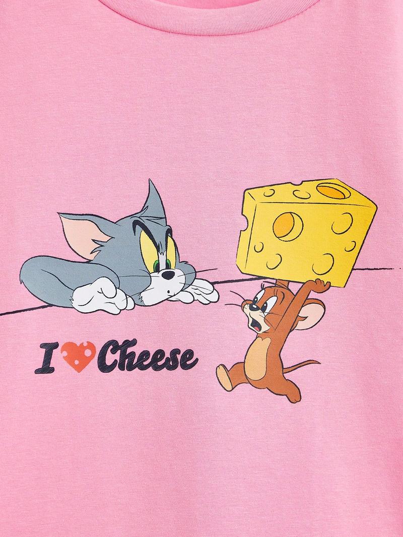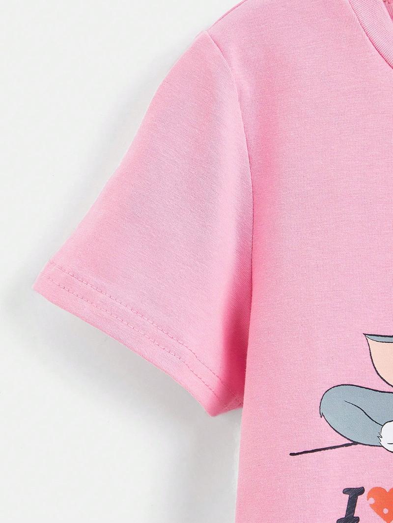 Футболка с рисунком и надписью SHEIN для молодых девушек, розовый