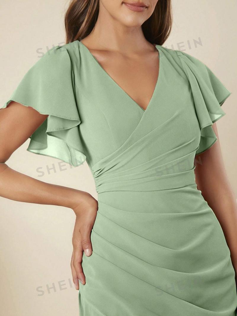 SHEIN Belle Женское платье для подружки невесты с v-образным вырезом и листьями лотоса, мятно-зеленый