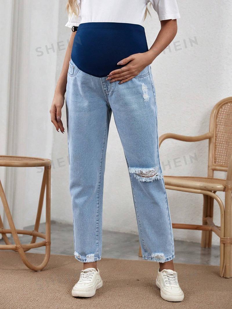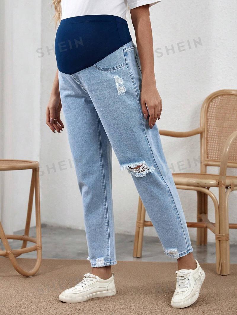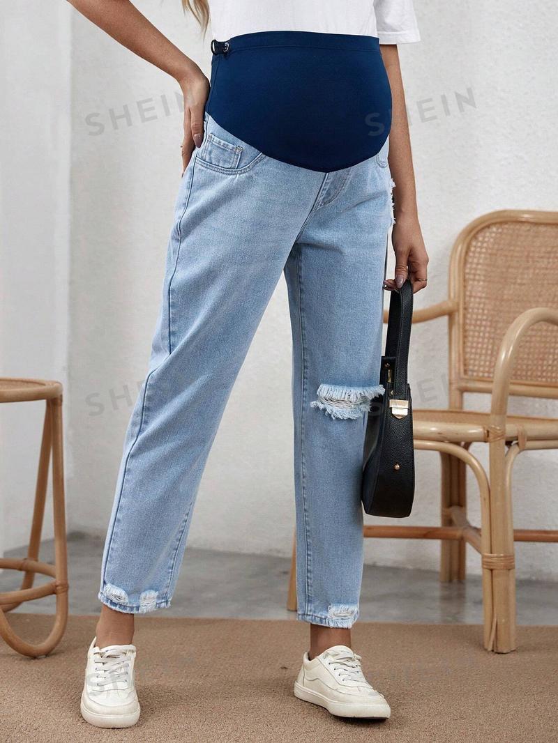 SHEIN Джинсы для беременных с регулируемой талией и поддержкой живота, легкая стирка