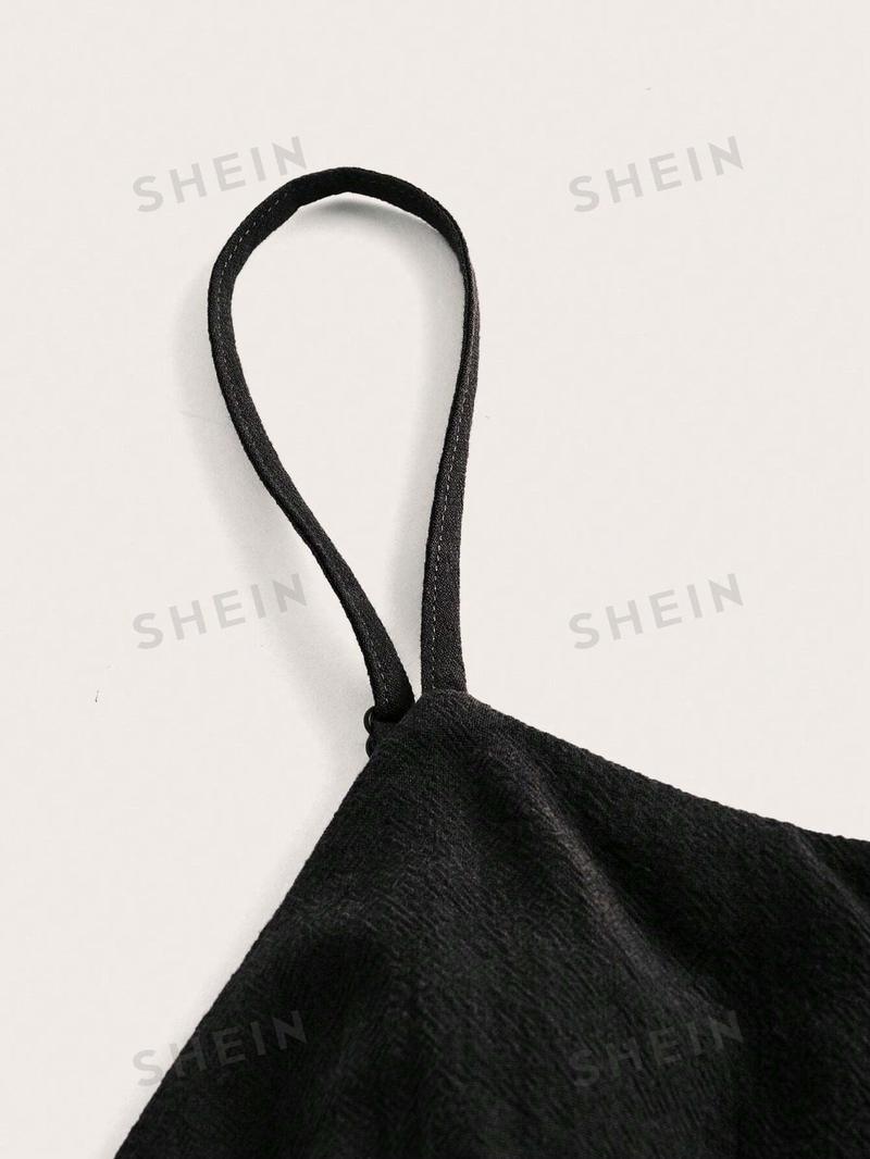 SHEIN EZwear Мятно-зеленое тканое платье макси на тонких бретелях в праздничном стиле, черный