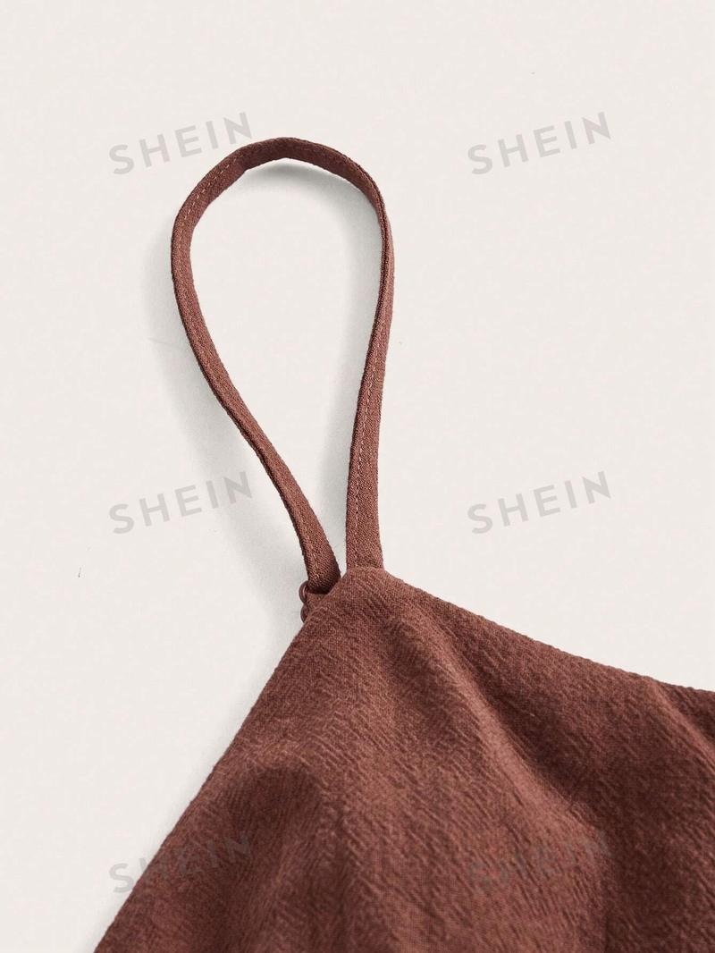 SHEIN EZwear Мятно-зеленое тканое платье макси на тонких бретелях в праздничном стиле, раст браун