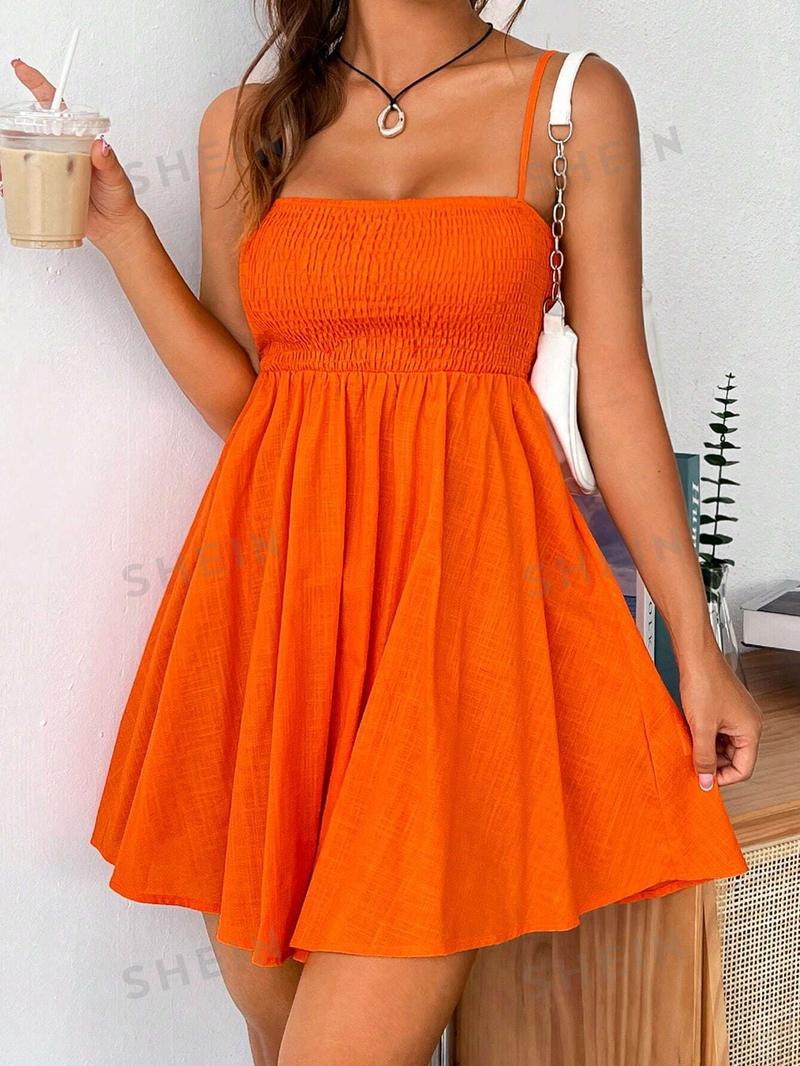 SHEIN EZwear Женское тканое платье-комбинация с V-образным вырезом, апельсин