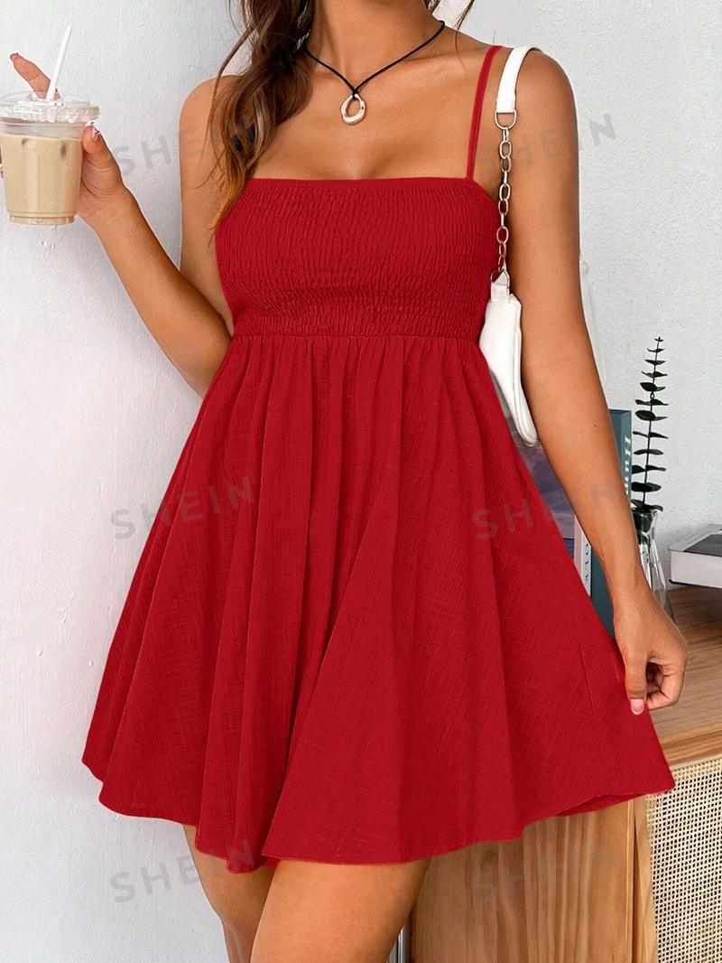 SHEIN EZwear Женское тканое платье-комбинация с V-образным вырезом, красный