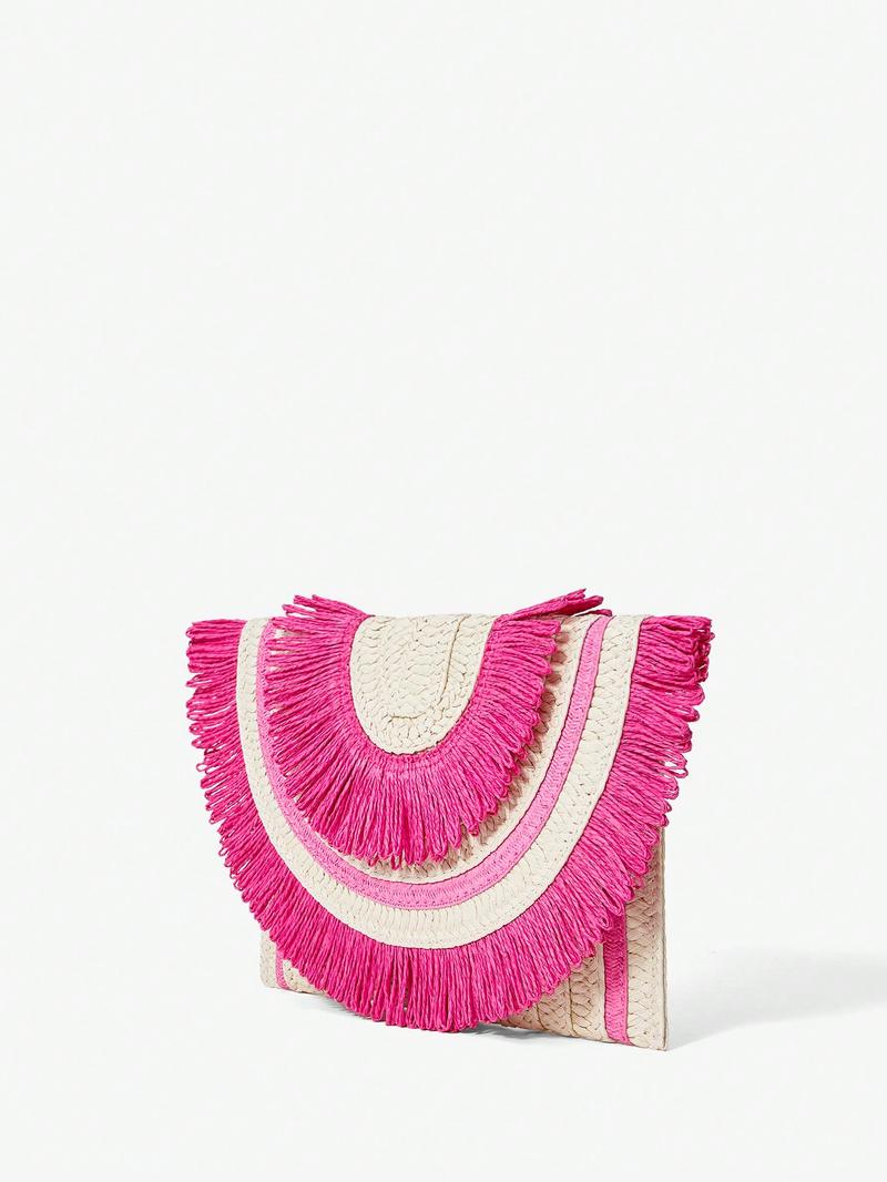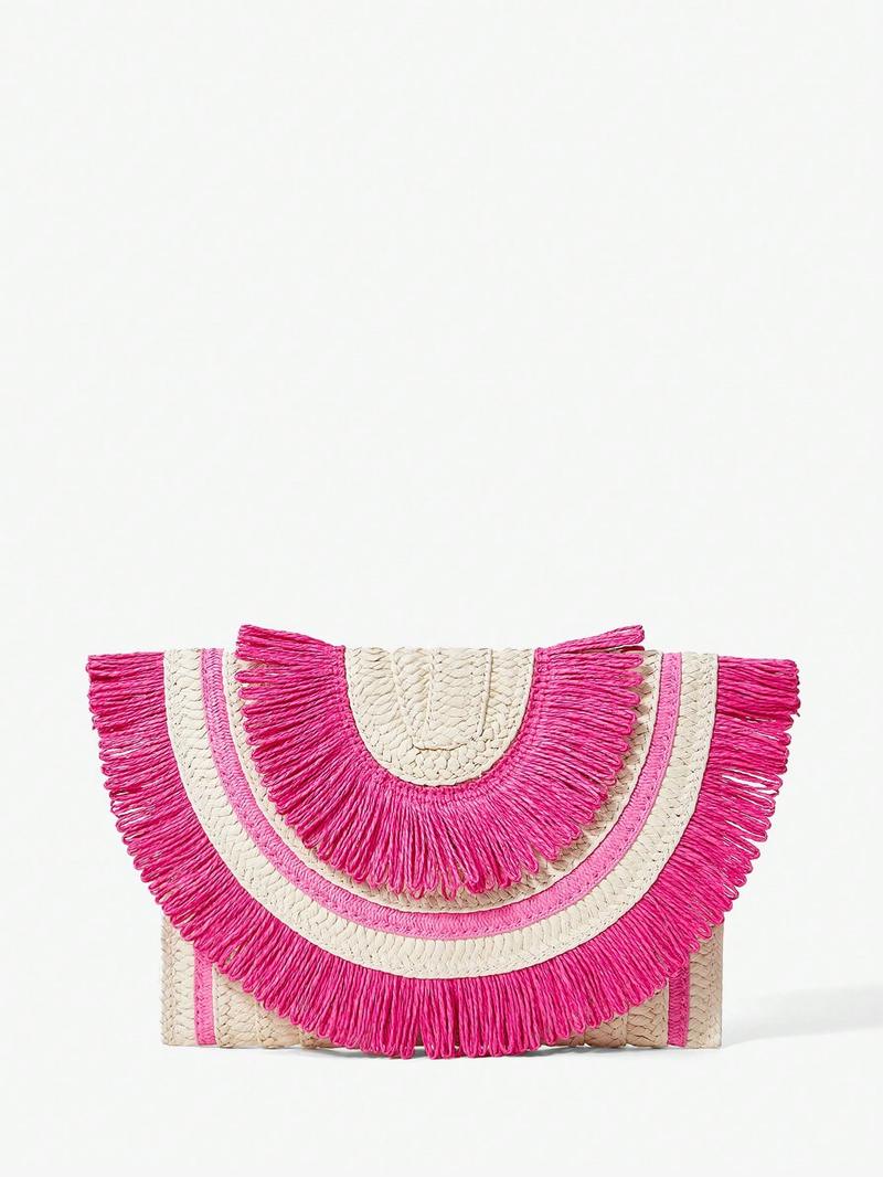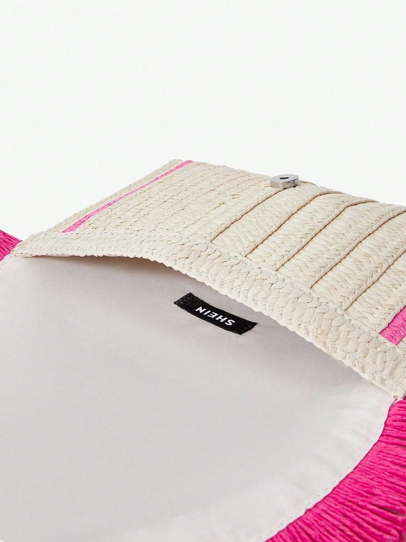 SHEIN SXY Женская модная простая двухцветная тканая сумка, ярко-розовый