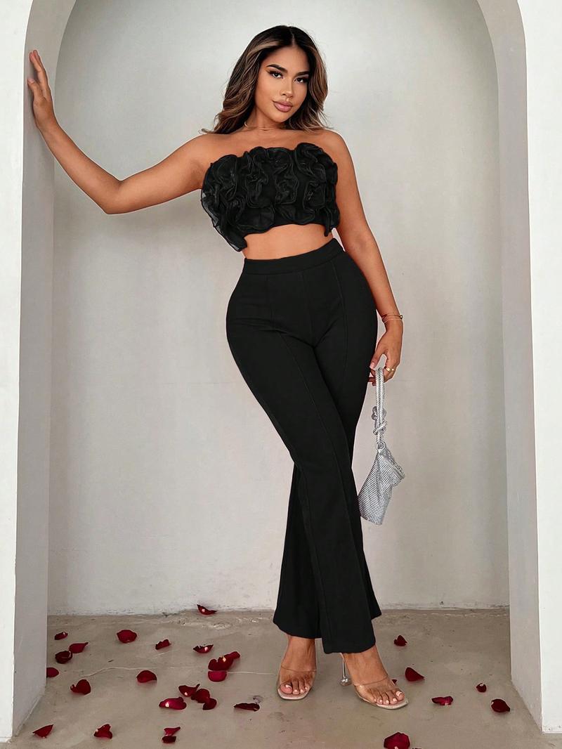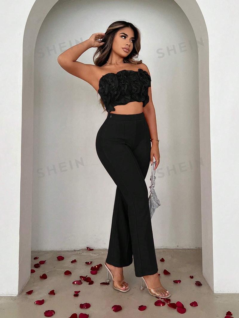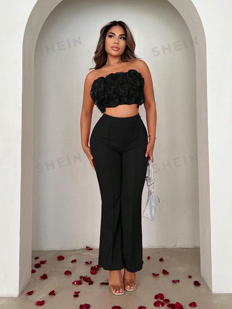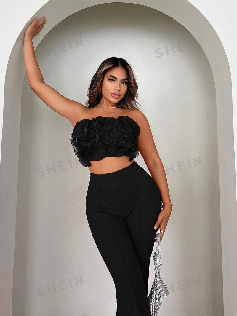 SHEIN SXY Женский многослойный комплект из двух предметов с рюшами и подолом, черный
