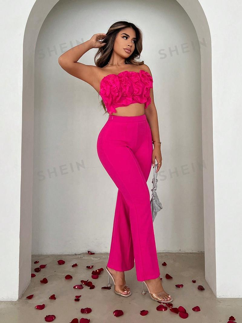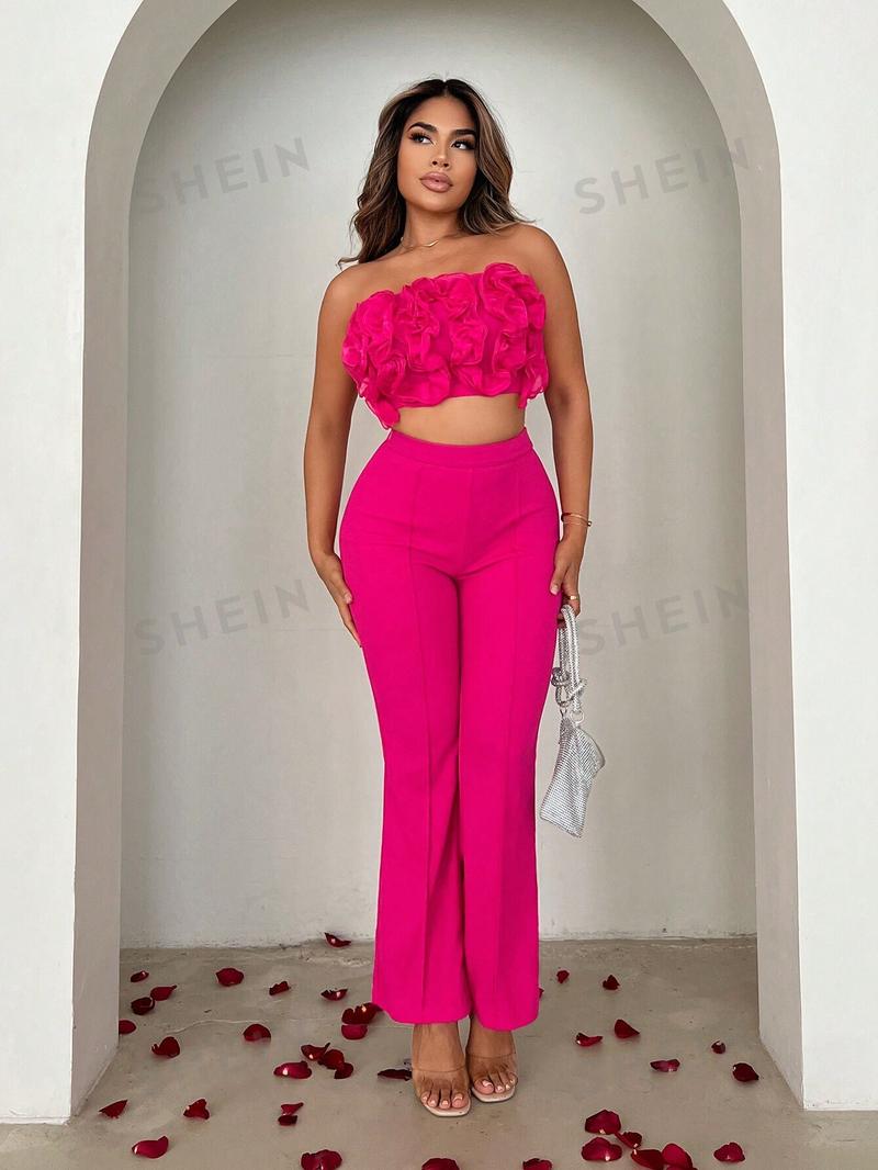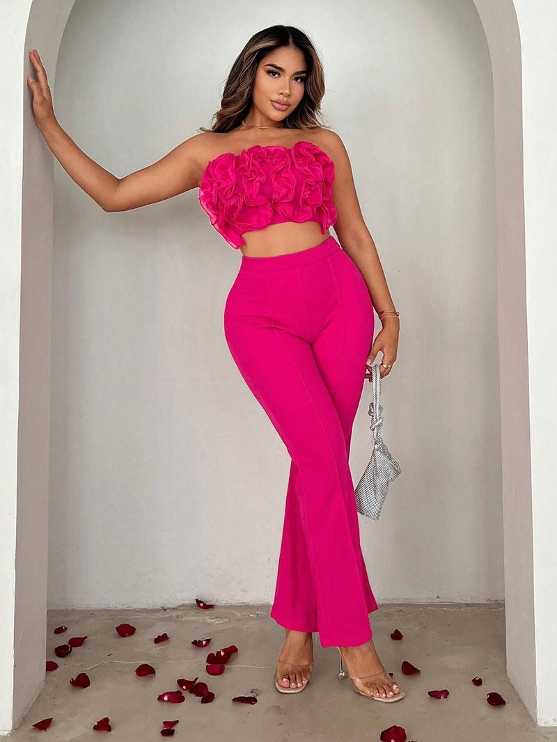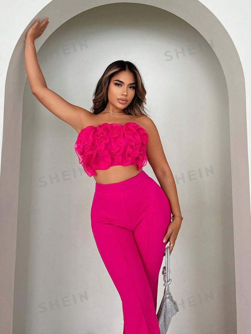 SHEIN SXY Женский многослойный комплект из двух предметов с рюшами и подолом, ярко-розовый