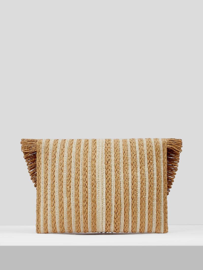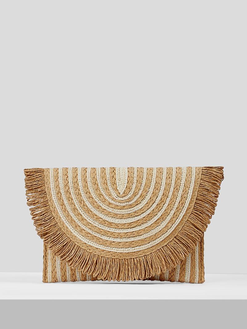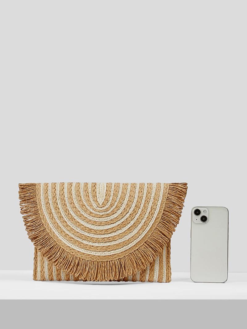 SHEIN VCAY Соломенная сумка с полосатым узором и бахромой, абрикос