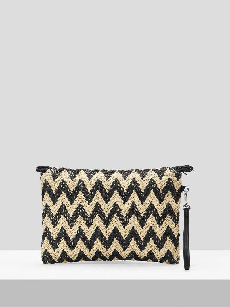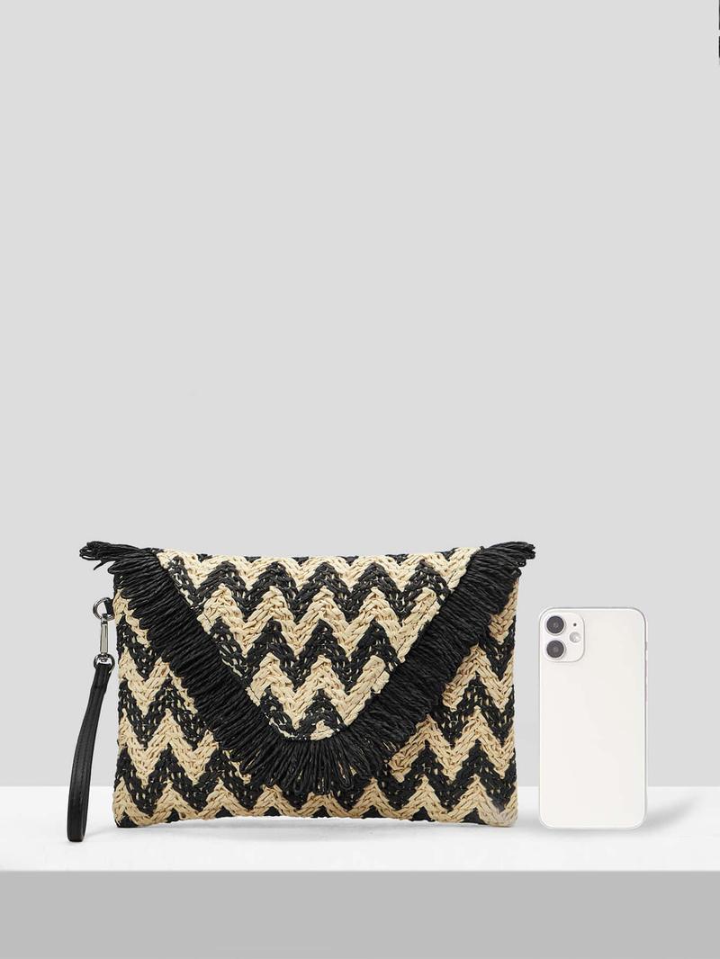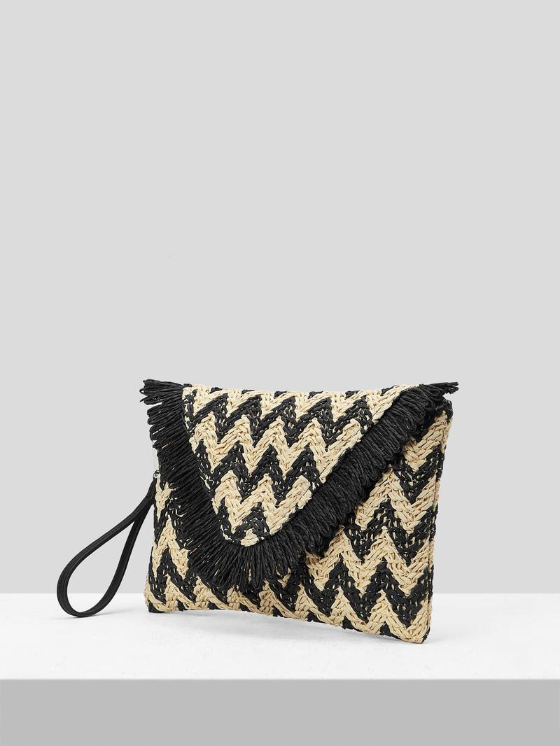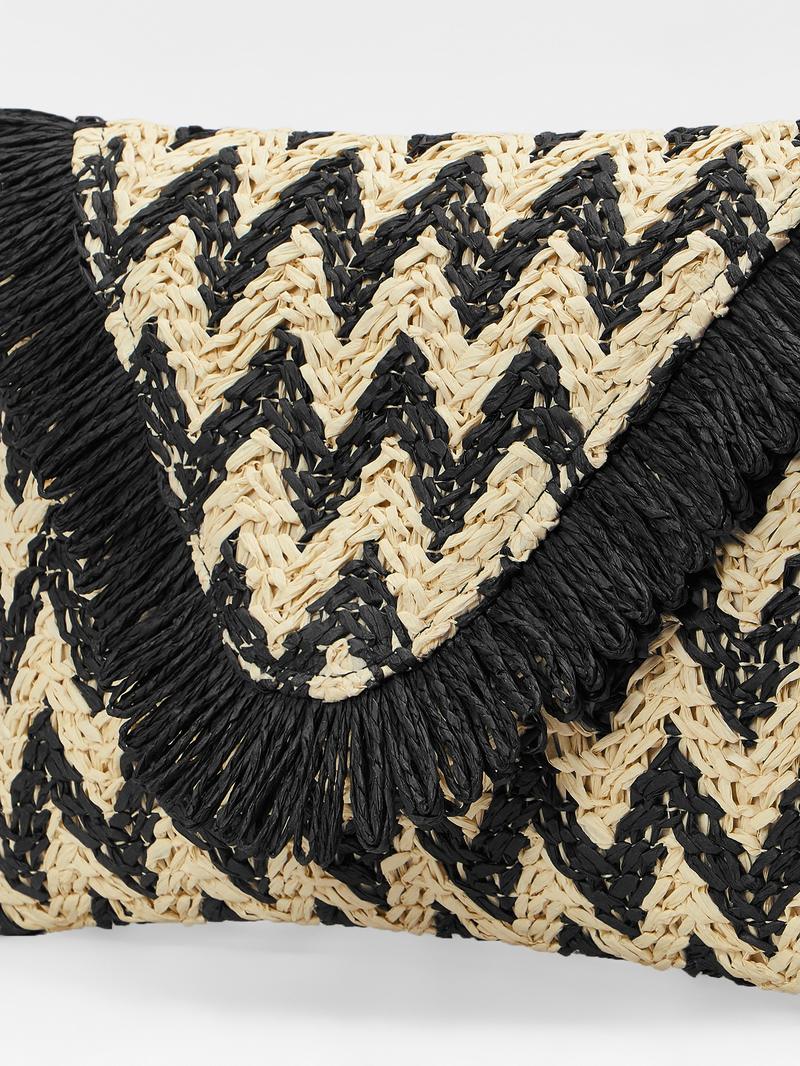 SHEIN VCAY Соломенная сумка с шевронной отделкой и бахромой, многоцветный